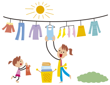 お家もあります。ベランダのように室外ではないため、洗濯物が飛んで行ってしまうことがあ