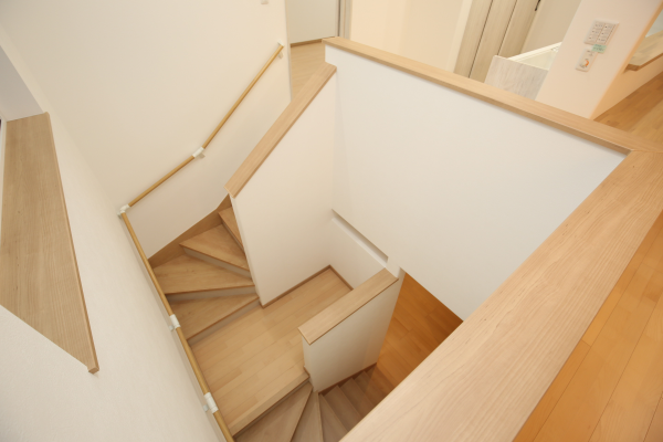 ▲踊り場(中二階)を作り読書スペースとして階段を設置