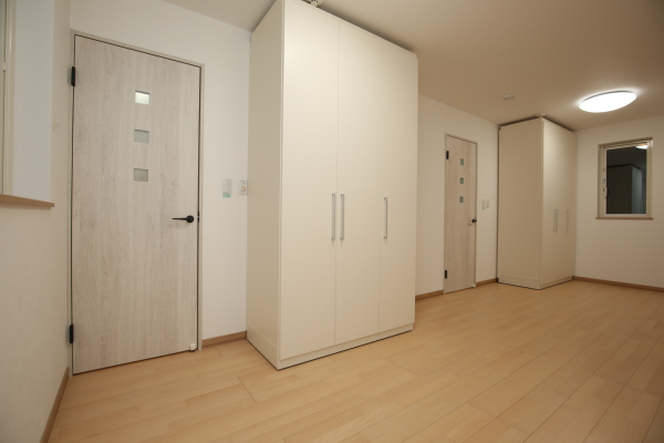▲移動できるクローゼットを2台設置した子供部屋。部屋の形は自由に