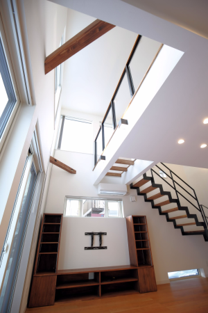 ▲リビング・吹き抜け空間 2階廊下にはスケルトン床を造作