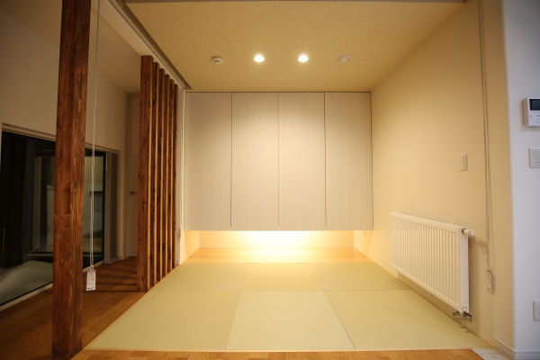 ▲ 和紙でできた畳を採用し大容量の吊押入れに