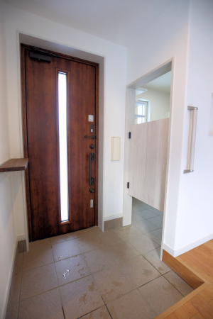 ▲シューズクローク出入口にはこだわりのウエスタンドアで