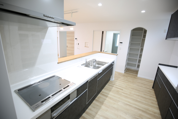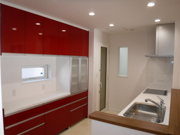 ▲1階キッチンスペース 外部流入方式食品庫も設置しました。