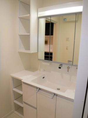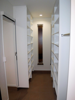 ▲ 2階水廻り スペースに合わせて可動棚を造作