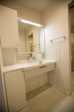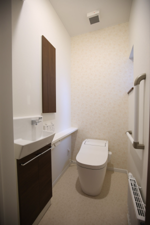 ▲1階水廻り 車いすでも対応できる洗面台を設置