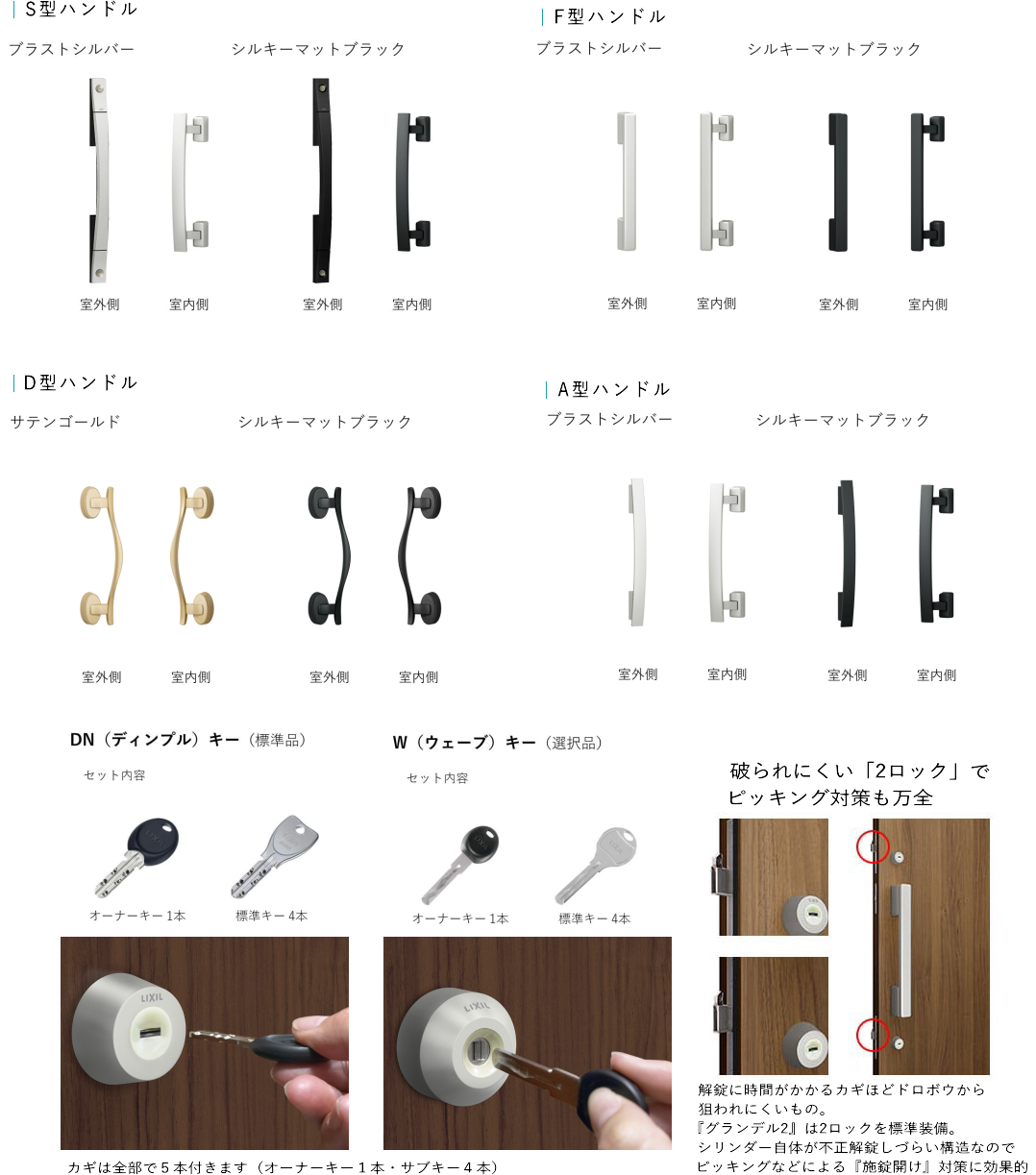 ![]() ![]() ハンドル・カギは電子錠又は手動錠よりお選びください