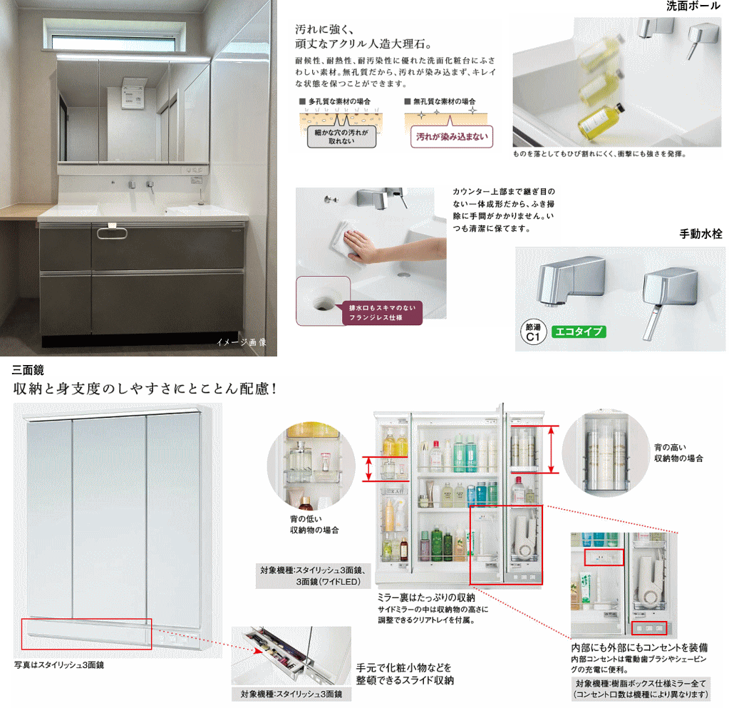 | 標準仕様書一覧→洗面化粧台 | |||||||||||||||