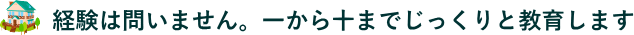 初めての仕事・職場は不安です。安心して独り立ちできるまで一から十までじっくりと教育します。